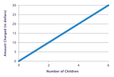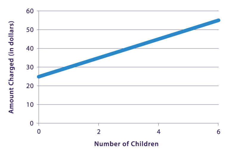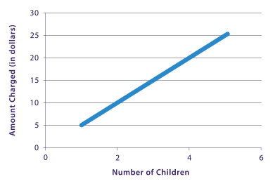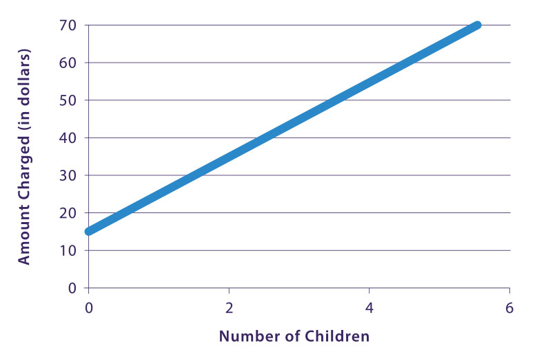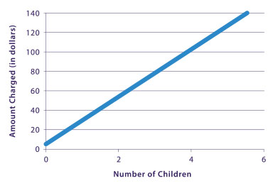 Kat and Xander's business got off to a great start. The only difficulty they had was in bringing the right number of balloons. They often seemed to either have too many or not enough. Xander believed that there should be a set number of balloons per child at the party, plus some extras, just in case. Kat thought about it and developed an equation they could use. Here is the equation modeled as a graph: