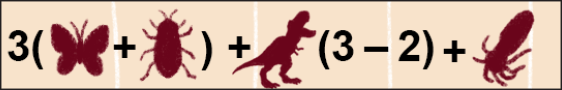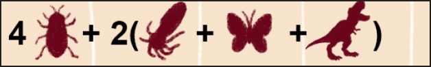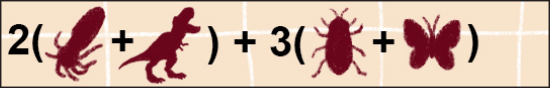 Next we’ll multiply everything in the parentheses by the variable g (since silver keys are 5 times the unknown variable and brass keys are 4 times the unknown variable). That’s 5g x 4g = 40.
