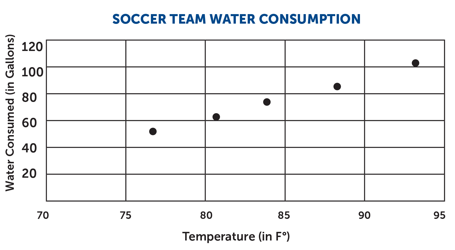 Tempest is preparing graphs for a special about staying hydrated during hot, humid weather. She collected data on how the soccer team’s water consumption changed as the temperature changed.