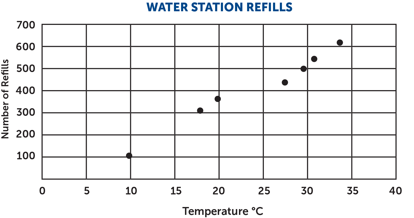Tempest has an idea for a new TV episode: how temperature affects the decisions people make. She’s creating a graph from data about people refilling their water bottles when hiking.
